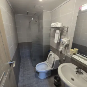 급하게 가서 잡은 숙소 ,,, 그냥 모텔같네요 ,, 화장실 타일도 깨져있고 실내에서 신는 일회용 슬리퍼는 누가 신었는지 포장이 벗겨진 상태로 색이 변해있고 ,,, 그냥 잠만 자러 가는거면 추천