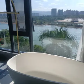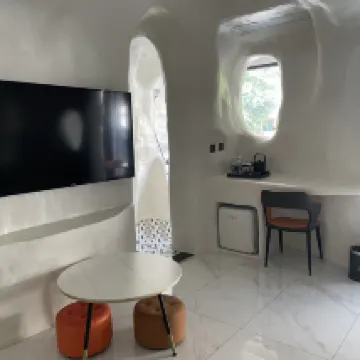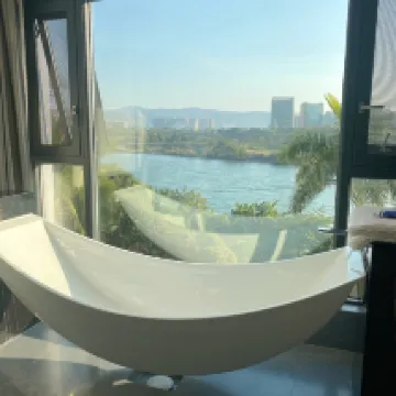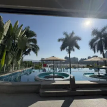 I stayed in the family room that is huge and has a x-large bed and a solid bunk bed. Great location -- walk 10 mins to the east you are in the night market, and walk 10 minutes to the west you are in Mandou which is more affordable. There is a nice pool right behind the lobby and you can enjoy with a river view.