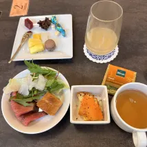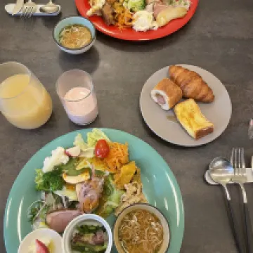 มันเป็นอาหารเช้าที่ยอดเยี่ยม อย่างที่ข่าวลือบอกไว้! แต่ละรายการในเมนูได้รับการจัดเตรียมอย่างพิถีพิถันและใช้วัตถุดิบในท้องถิ่น ฉันรู้สึกประหลาดใจกับความหลากหลายของของหวานมากจนฉันคิดว่า ``ทำไมไม่ลองบุฟเฟ่ต์ขนมหวานดูล่ะ?'' มันอร่อยมากจนฉันอ้อยอิ่งอยู่นาน ฉันพักในห้องมาตรฐาน ห้องพักมีขนาดกะทัดรัด แต่สะอาด และห้องน้ำก็กว้างขวาง อ่างอาบน้ำก็ใหญ่พอที่จะเหยียดขาของฉันได้ มีสิ่งอำนวยความสะดวกให้เช่ามากมาย และฉันก็ยืมเครื่องนวดหน้าเพื่อผ่อนคลายได้อย่างเต็มที่ มีห้องอาบน้ำสาธารณะอยู่ใกล้โรงแรมนี้ และน้ำพุร้อนธรรมชาติก็ดีมาก อย่างไรก็ตามดูเหมือนว่าจะปิดไปนานแล้ว ดังนั้นฉันขอแนะนำอย่างยิ่งหากคุณสามารถไปก่อนนั้นได้