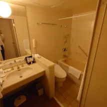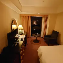 ห้องนี้มีสิ่งอำนวยความสะดวกไม่มากนักและให้ความรู้สึกถึงวัย ถึงกระนั้น ก็เป็นห้องพิเศษแต่ก็มีครบทุกอย่างที่ต้องการ (มีเครื่องทำความชื้นและผ้าเช็ดฆ่าเชื้อด้วย) ทำให้รู้สึกอบอุ่นและสบายตัว บุฟเฟ่ต์อาหารเช้าค่อนข้างดี มีรถรับส่งไปยังสถานีเกียวโตก็สะดวกมาก และมีซูเปอร์มาร์เก็ตในบริเวณใกล้เคียง