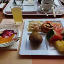 โรงแรมค่อนข้างน่าพอใจ ห้องพักเก่ากว่าจริง ๆ และอาหารเช้าก็โอเค ทำเลอยู่ในปราสาทนิโจซึ่งเหมาะสำหรับการทำอาหารเองมากกว่า ฉันเลือกที่นี่เพราะมีที่จอดรถฟรี อย่างไรก็ตาม จะสะดวกกว่าในการ นั่งรถไฟใต้ดินเพื่อไปยังบริเวณใจกลางของเกียวโต อาหารเช้าวันส่งท้ายปีเก่า ถือเป็นมื้อเช้าที่รอบคอบ