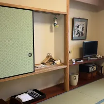 Нам очень понравился рёкан. Это была классная возможность пожить в атмосфере настоящего японского дома. Внутри всё очень чисто. Комната организована функционально - футоны для сна, столик для вечернего чаепития, телевизор, кондиционер, воздухоочиститель. В рёкане всегда можно налить горячую воду и подогреть еду в микроволновой печи.