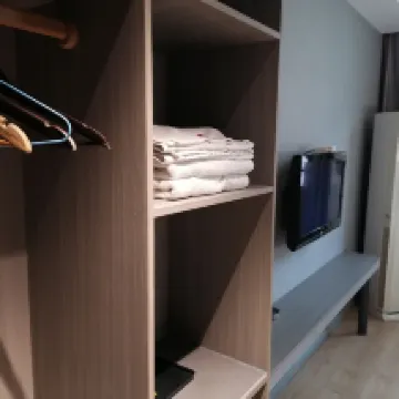 房間整體比較乾淨,但馬桶🚽壁上有上個客人拉的屎未能清理乾淨,馬桶蓋是扣着的,我自己拿着噴淋進行了沖刷,洗手枱上有女性的長髮,説明打掃衞生的人員多少還是有些粗心。但房間整體還是不錯的,出行也便利,前台服務態度也很好,床睡着很舒服!
