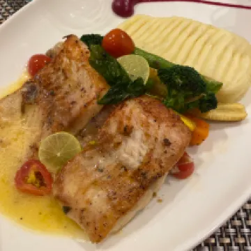 The towels had some stains on it and the dinner that I ordered arrived quite late with dessert that went cold . But the location and the main dish that I ordered was good .