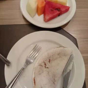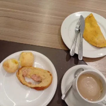 Café da manhã bom (principalmente as tapiocas)