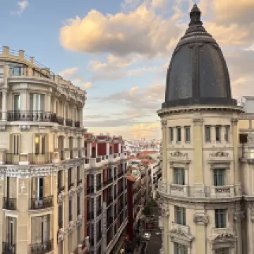 The hotel’s location on Gran Vía is unbeatable: perfect for strolling through the city and discovering the beauty of Madrid step by step.