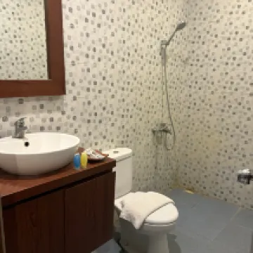 Untuk shower terlihat kotor dan air dari shower krluar kurang keras. Untuk fasilitas yang lain sudah bagus dan nyaman