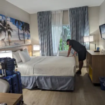 Le garçon à l'accueil était très gentil. Souriant poli est très serviable. L'accueil a été très agréable la chambre était désuet. Un petit peu plancher, pas très propre mais très correct pour dormir quelques heures avant de reprendre l'avion