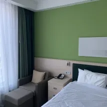 Заселение прошло гладко и оперативно — заселили сразу по прибытии, без ожидания. Номер оказался чистым, ухоженным и хорошо оборудованным. В номере были чай, кофе, бутилированная вода и тапочки.