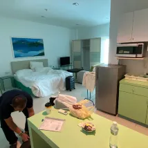 The apartment are old. Some of the part are damage like the toilet door handle, shower door handle, basin drainage are a bit stuck. Kitchen and dining hall are OK. Very spacer. Location is quite convenience as there are many eating places nearby with walking distance.