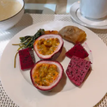 อากาศที่ชิงจิ้งฟาร์มตอนเช้าและเย็นค่อนข้างหนาว เย็นกว่าพื้นที่ราบประมาณ 12-13 องศา ควรเข้านอนแต่หัวค่ำและตื่นแต่เช้า เพราะพระอาทิตย์ขึ้นและตกสวยที่สุด สามารถเห็นพระอาทิตย์ขึ้นได้จากด้านหน้าของโรงแรมคุงฮัวหยวน อาหารเช้าหลากหลายและอิ่มจนจุก เจ้าของต้อนรับด้วยตัวเองและเป็นกันเองมาก The Old England Inn ก็เป็นของเขาเหมือนกัน ทั้งสองที่สร้างโดย Da Luo Xiao Luo Construction!