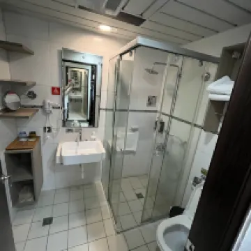 แม้ว่าพื้นที่ในห้องเตียงคู่ทั่วไปจะมีขนาดเล็ก แต่ความรู้สึกโดยรวมก็สะดวกสบาย ทัศนคติการบริการเป็นบวกมาก👍 อาหารเช้าใช้ได้ทั่วไป มีแต่เครื่องดื่มเย็นๆ (รสชาติต้องปรับปรุง)