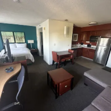 供家庭出遊的residence inn ,房間大,一個人住有點奢侈,自助早餐還行,就是天天一樣,多吃了就膩了,自助洗衣不錯。 附近有幾家超市,過馬路還有一家safeway,購物方便