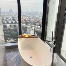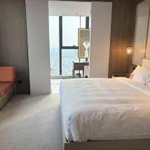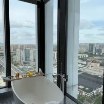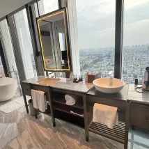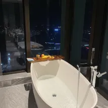 Got a free upgrade from the staff. This hotel is amazing ad it’s very convenient to travel around. However spotted some dirts in the sink and there are some design flaws in the room (e.g there are 2 sinks, 1 with mirror, 1 without; bathroom lights are controlled with ONE button only, so you either turn on every single lights in the bathroom, or it would be very dark). The bath tub is awesome with a spectacular view.