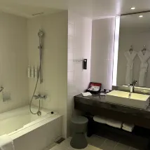 ห้องไม่ใหญ่แต่สะดวกมาก ยกเว้นทางอ้อมเมื่อมาถึงสถานีชินโอซาก้าครั้งแรกและไม่รู้ว่าจะไปที่นั่นโดยใช้เวลาเดินเพียง 3 นาทีจากโรงแรมถึงสถานี สะดวกมากสำหรับรถไฟใต้ดิน ชินคันเซ็น ฯลฯ ! ขอแนะนำเป็นอย่างยิ่งสำหรับเพื่อน ๆ ที่เดินทางไปรอบ ๆ โอซาก้า!