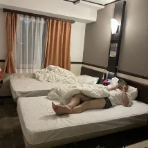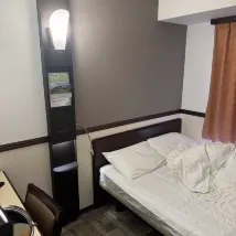 โรงแรมใหม่ หาง่าย ราคาไม่แพงสำหรับย่านแหล่งท่องเที่ยว ห้องพักชั้น 10 แบบเตียงเดี่ยว กางกระเป๋าได้พอดี 2 ใบ เก็บใต้เตียงได้ นอนสบาย แม้จะมีกลิ่นบุหรี่เข้าห้องบ้าง (เหมือนเป็นชั้นที่สูบบุหรี่ได้ แต่เราไม่สูบบุหรี่) วิวหอ tsutenkaku สวยดี พักที่นี่ 6 คืน เพราะอยู่ใกล้สถานี Tennoji นั่งรถไฟเที่ยวทุกวัน สะดวกมาก อาหารเช้าเหมือนเดิมทุกวัน ข้าวปั้น ครัวซองต์ ซุป ชา กาแฟ เก็บเร็วไปนิด 9.00 am พนักงานยิ้มแย้มต้อนรับดี ของใช้มีครบตามความจำเป็น ฝากกระเป๋าได้ฟรีก่อนเช็คอิน