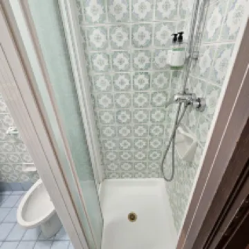 Bagno singolo pulito, unco neo: i dispenser con il sapone liquido e shampoo al posto di boccette/fialle di shampoo / mini saponette. Allego foto della camera doppia (dopo aver scaricato due bagagli ma fatevela andare bene se siete curiosi).