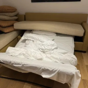 ทำเลที่ตั้งของโรงแรมดีและเราชอบทุกอย่างเกี่ยวกับที่นี่ ตอนแรกฉันรู้สึกสับสนกับบทวิจารณ์เชิงลบในหลาย ๆ ไซต์ มีมากเกินไปสำหรับโรงแรม 4 ดาว แต่ทำเลและการไม่มีทางเลือกอื่นในราคานี้ทำให้ฉันต้องจองเป็นเวลาห้าคืน โดยสรุปสิ่งที่สำคัญที่สุดที่ทำให้เสียความประทับใจ 1. ระบุเวลาเช็คอินตั้งแต่ 15.00 น. แต่เรามาถึงตอน 17.00 น. และที่แผนกต้อนรับพวกเขาแจ้งให้เราทราบเกี่ยวกับเหตุสุดวิสัยและเราต้องรออีก 40 นาที แต่โดยทั่วไปแล้วเราเดินทางจากสหพันธรัฐรัสเซียด้วยการโอนและอยากจะนอนลงแล้ว 2. เมื่อเช็คอิน พวกเขาขอให้เราชำระค่าบริการ 40 ยูโรต่อผู้ใหญ่หนึ่งคนทันที (ไม่เป็นไร เนื่องจากฉันเห็นข้อมูลนี้เมื่อจองผ่านผู้รวบรวม) ชำระเป็นเงินสด แต่เมื่อเราเช็คเอาท์ออกจากโรงแรม เราก็ถูกเรียกเก็บค่าธรรมเนียมนี้อีกครั้ง!!! เห็นไหมว่าพวกเขาไม่ได้จดบันทึกไว้ในระบบว่าได้รับเงินแล้ว และเนื่องจากฉันชำระด้วยเงินสด ฉันจึงไม่ได้รับการยืนยันการหักบัญชีจากบัตร แน่นอนว่าฉันจะไม่ยากจนลงจากจำนวนนี้ แต่ความเป็นจริงของสถานการณ์เช่นนี้ทำให้ฉันเสียใจ และโพสต์ดังกล่าวไม่เป็นที่ยอมรับของโรงแรมระดับ 4 ดาว 3. สิ่งเล็กๆ น้อยๆ อย่างหนึ่ง - ไม่มีรองเท้าแตะอยู่ในห้อง หลังจากโทรไปพนักงานต้อนรับแล้วด้วยเหตุผลบางอย่างเขาก็เอาคู่มาแค่คู่เดียวถึงแม้จะมาแค่สองคนก็ตาม ฉันยังต้องโทรไปหลายครั้งเพื่อเอาสบู่มาด้วย เนื่องจากไม่มีอะไรจะล้างมือด้วยซ้ำ ไม่มีชุดทันตกรรมเช่นกัน