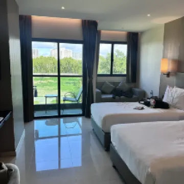โรงแรมอยู่ในซอยจอมเทียน 14 ทางเดินรถเป็นวันเวย์ มีป้ายบอกชื่อโรงแรมมองเห็นง่าย เดินไปที่หาดไม่ไกล ที่จอดมีทั้งจอดใต้ดินและด้านข้างที่เป็นด้านนอก โถงโรงแรมส่วนต้อนรับเปิดโล่งไม่มีแอร์ แต่ไม่มีกลิ่นไม่พึงประสงค์ มีมัดจำคีย์การ์ด 1,000 บาท เป็นเงินสด ได้รับคืนตอนเช็คเอ้าท์ ได้ห้องพัก 419 อยู่มุมสุด ทางเดินในชั้นที่พักสะอาด แยกลิฟต์แม่บ้านขนของ กับแขกผู้เข้าพักอย่างชัดเจน ห้องพักกว้างขวางสะอาด ไม่มีตู้เสื้อผ้าแต่มีเป็นราวแขวนผ้าแทน มีตู้เย็น มินิบาร์เล็กๆ มีสมาร์ททีวี ห้องน้ำชักโครกไม่แรงมาก แต่ฟักบัวส่วนอาบน้ำแรงดี ของใช้ในห้องน้ำมีหมวกอาบน้ำ คัตตอนบัด สบู่ก้อนเล็ก แชมพู สบู่อาบน้ำ มีไดร์เป่าผม ที่นอนเตียงใหญ่คือเอาที่นอน 2 ชิ้นมาต่อกันอาจะมีรอยต่อตรงกลาง แต่นอนสบายไม่ปวดหลัง มีหมอนให้คนละ 2 ใบ ทีวีเป็นแบบสมาร์ททีวี สัญญาณไวไฟแรงไม่สะดุด ในส่วนของฟิตเน็ตห้องไม่ใหญ่มากมีเครื่องเล่นระดับนึง มีห้องซาวน่า และสระว่ายน้ำวิวดี นั่งรับลมตอนเย็นได้ อาหารเช้าไลน์อาหารไม่เยอะมาก รสชาติกลางๆ เติมอาหารตลอด โดยรวมประทับใจการเข้าพักครั้งนี้ค่ะ