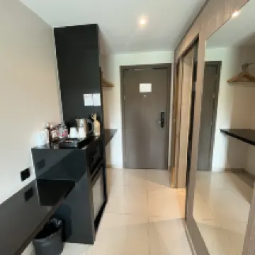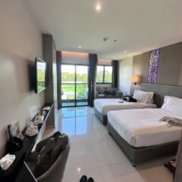 เป็นโรงแรมเปิดใหม่ เตียงคือใหญ่เตียงหมอนดูดวิญญาณ ผ้าห่มใหม่นะหนุ่มห่มอมาก สิ่งอำนวยความสะดวกโอเค พนักงานบริการดี ทุกอย่างโดยรวมถือว่าโอเค แต่ขอติอยู่หนึ่งอย่างคือความสะอาดตามซอกยังมีเศษฝุ่น ซึ่งอาจจะดูไม่เรียบร้อยเพราะพักต่ออีกวันให้แม่บ้านเข้ามาทำงานแต่ก็ไม่แน่ใจว่าเค้าไม่เห็นหรือว่ายังไงในตรงซอกนั้นก็ยังไม่ได้กวดหรือถูก็ยัง สกปรกมีฝุ่นอยู่เหมือนเดิม ในส่วนทำเลที่ตั้งคือดีอยู่ไม่ไกลจะขาดมากหาของกินได้ง่าย เดินทางสะดวกสบาย