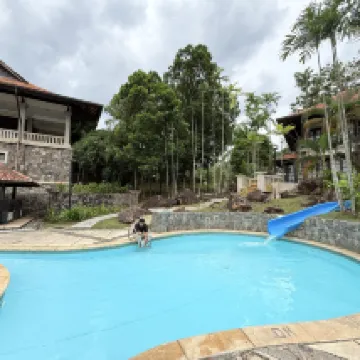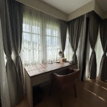 A very calm place away from city. Less visitors during weekdays, good if you don’t like being in a crowds. Please don’t expect a 5 star hotel room service. It does look like a 5 start resort (the entrance & architecture) but considering that this place is very cheap, we don’t have high expectations on the service. So we don’t bother much. There were flies while we are having breakfast. So that’s quite disturbing. Dinner was tasty. Water running a bit slow during check in day. But don’t worry i was positive about it since there was not much people checking in during weekdays so management probably need to do some saving. Anyway, the place was very fun, calm and peaceful. I love the trees there so calming. This place will become a hit if it is located in Desaru. The room looks new.