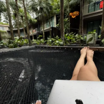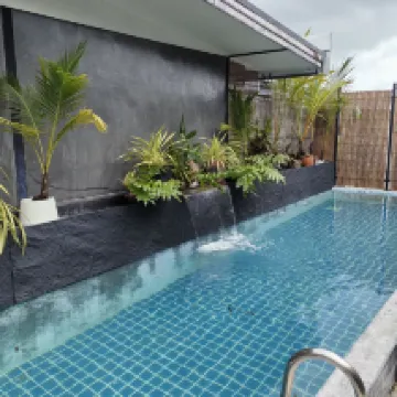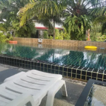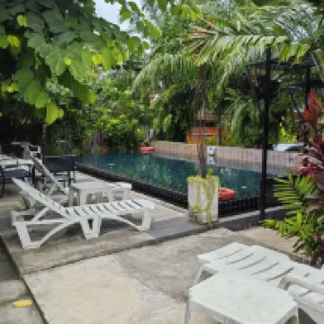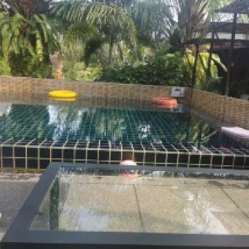 Отель очень зеленый, пальмы, папоротники, рыбки и пр. Два бассейна, прохладный для взрослых 1,4 метра и теплый маленький 1,2 с водопадом. Прожили три недели (ноябрь декабрь). Пешком ходили на пляж Ao-Yon через холмы 21 минута ( два подъема в каждую сторону , нам за 60 но справлялись. Пляж отличный всегда спокойный, можно плавать как в бассейне. Отдыхающих мало, есть кусты и деревья можно отдыхать в тени.