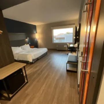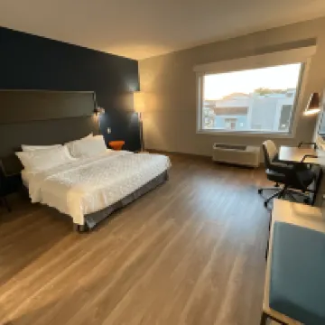 First time at a Tru brand. Had a funky, youthful feel to the hotel. Room was compact, clean and had plenty of USB charging options. Overall casual feel. Perfectly adequate for our overnight stay, standard hotel breakfast of eggs, sausage, cereal and bread and a novelty pancake machine.