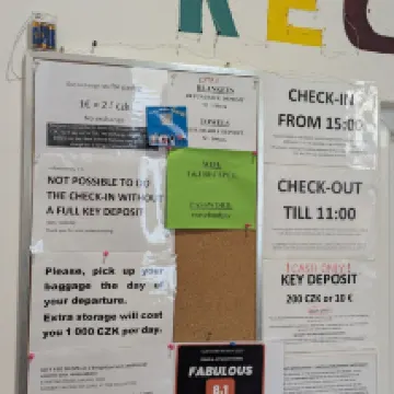 We checked in late at the bar but the bartender was more keen on selling beer and we stood in line at the bar counter for about 10 minutes before he acknowledged us and while locals cut in the line in front of us. It took another 10 minutes for him to hand us the paperwork to check in. I was kind of disappointed because I filled in a pre check in before coming to Prague and the check in paperwork was asking for the details I had filled out online from their online check in sent over email. The bar is not a reception and it clearly says that in the communication sent but it would be nice to have the towels in our room so we could at least shower after a late check in.