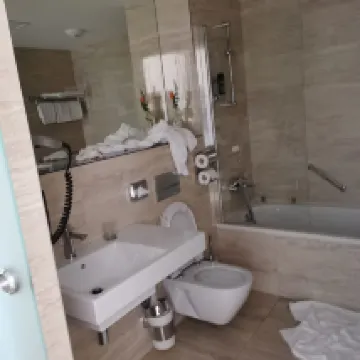 ห้องค่อนข้างใหญ่ในปรากแต่กลิ่นทั้งโรงแรมไม่ค่อยดีนักและมีกลิ่นเท้าจางๆด้วย ห้องน้ำตกใจมาก ออกแบบแยกเปียกแห้ง ล้มเหลว สรุปไม่ได้ผล กั้นแค่ครึ่งเดียว พื้นทั้งหมดกลายเป็นสระน้ำ ไม่มีท่อระบายน้ำที่พื้น...ผมใช้เวลานานมาก เวลาทำเองจะได้ไม่ลื่นล้ม อย่างไรก็ตามอาหารเช้าก็ไม่อร่อยมากเช่นกัน