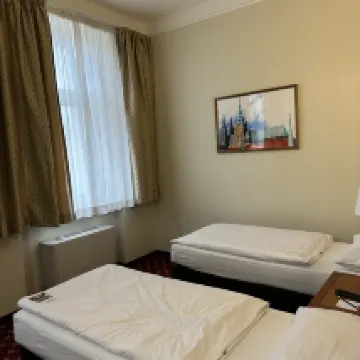 Great price for a central location . Friendly staff and a good-sized room & bed for one person. Easy to walk into New & Old Town quarters. A buffet breakfast was included in the price. Received a voucher for a free drink on the rooftop of a close by sister hotel and a Prague Pass card for city discounts. An enjoyable stay.