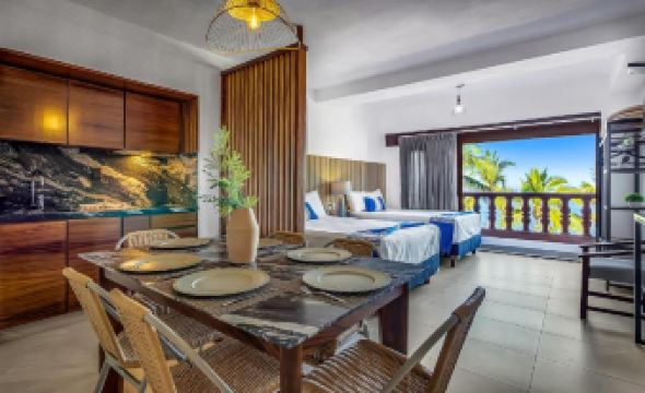 We had a terrible experience at this hotel. I stayed here with my two friends from 26th to 29th December 2025. The guy at the reception, Franko, was too rude. There were a number of problems with the room, the towels had big stains on them, there was big dirty stain on one of the bedspread, the shower nobs came off while turning them. We had to leave the shower on for 10 minutes before any hot water came out of it. When we told the guy at the reception he told us that we washed everything, it's not dirty. Also, the hotel next to this one was giving snorkeling gear for 65 Pesos, while this one tried charging us 150 for one hour which doesn't include the vest. When we reached out to the reception guy that we are guests of this hotel and the next hotel is giving it to their guests for 65. He very rudely said, "go get in that hotel then" when the other hotel only gave the equipment to their guests. You're better off booking any other hotel, this is too expensive and honestly not worth it.