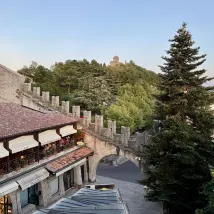 酒店最大優勢是就在進入城區的大門口,距離停車場最近,對於帶大行李而言,要方便很多,聖馬可諾全部是山路,且是石頭路,帶行李很難走動。國家很小,半天可以走完。酒店衞生可以,服務也熱情,會英語,但房間很小,兩個行李箱都放不下,配套設施幾乎沒有,也沒有熱水壺,早餐簡單。
