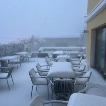 房間不大,床算舒服。酒店位置好。熱水壺、拖鞋都是找前台要才拿到的。夜裡開始下雪,第二天早上還是大雪紛飛。