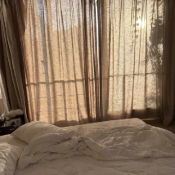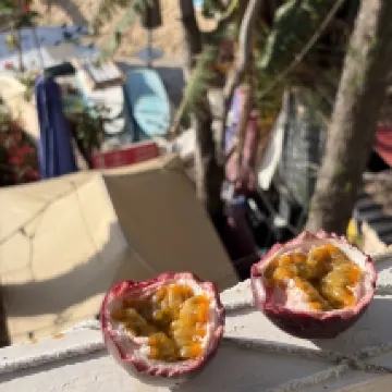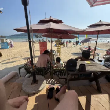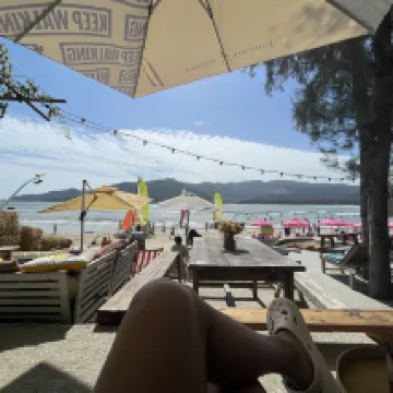 Location on the beach is excellent, we enjoyed sitting in the cafe overlooking the beach and sea enjoying the excellent food. The downside is there is loud music until 11pm. The terrace outside our room was shared and not private. The place is a bit tired, but a good vibe.