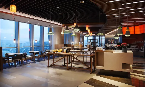 All rooms feature standard amenities including a fold-out sofa bed, 49-inch smart TV, separate workstation and guest area, plus floor-to-ceiling panoramic windows. The 23rd-floor Jiawei Buffet Restaurant & Executive Lounge serves ADD healthy cuisine; The Lobby Bar offers billiards and foosball entertainment, while the 24-hour fitness center on the 36th floor allows you to unwind completely.