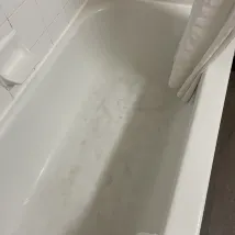 Dirty spots on bath tub, spots all over sheets and bad odor in the room