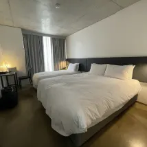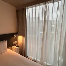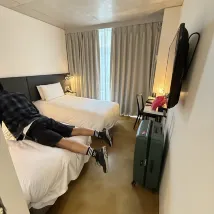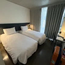 ห้องพักเล็กแต่ก็เพียงพอสำหรับนักเดินทางคนเดียว เป็นห้องเตียงคู่ ดังนั้นหากมีคนสองคนเข้าพัก กระเป๋าเดินทางก็จะไม่สามารถเปิดทิ้งไว้ได้ มีเส้นผมและฝุ่นบ้างประปราย แต่หากใช้แค่นอนก็ไม่มีปัญหา แม้จะตั้งอยู่ในย่านเมียงดงที่พลุกพล่าน แต่ห้องพักก็เงียบสงบมาก ทำให้ฉันนอนหลับได้อย่างสบาย เหนือสิ่งอื่นใด พนักงานทุกคนใจดี ยิ้มแย้มแจ่มใส และให้ความช่วยเหลือดี ทำให้ฉันพักได้อย่างสบายใจแม้จะเดินทางคนเดียว