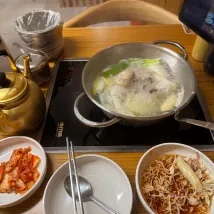 แม่ ลูกสาว และฉันพักในห้องสามเตียง ตั้งอยู่ใกล้กับสถานีเมียงดง ด้านหลังโรงแรมเซจง มีเตียงสามเตียงและอ่างอาบน้ำ เราจึงรู้สึกพึงพอใจมาก พนักงานต้อนรับพูดภาษาญี่ปุ่นได้ พนักงานทำความสะอาดทุกคนยิ้มแย้มแจ่มใสและเป็นมิตร เราจองรถรับส่งกลับได้ในวันก่อนหน้า ทางโรงแรมจองรถรับส่งให้เราเพราะเราไม่สามารถนั่งแท็กซี่ธรรมดาพร้อมกระเป๋าเดินทางใบใหญ่สามใบได้ ค่าเดินทาง 60,000 วอนไปสนามบินกิมโป แต่รถคันใหญ่ก็สะดวกสบายมาก ตอนนั้นเป็นเวลาตีห้าครึ่ง แต่พนักงานต้อนรับก็ยินดีพาเราเดินชมรอบๆ