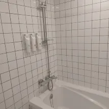 ไม่มีอ่างอาบน้ำ มีแค่ฝักบัวกับโถส้วม พออาบน้ำเสร็จ ท่อระบายน้ำก็เหมือนจะอุดตัน ฟองก็เลยสะสม... ท่อระบายน้ำอยู่ปลายโถส้วม บริเวณโดยรอบเลยเปียก ฉันไม่ชินกับมันเท่าไหร่ เลยรู้สึกเจ็บเวลาใช้นิดหน่อย เพราะมันใกล้สถานี ส่วนใหญ่ฉันเลยใช้รถไฟใต้ดินเดินทาง ทำเลที่ตั้งก็ดีมาก