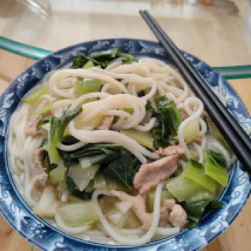 เจ้าของน่ารักมากค่ะ ให้เกี๊ยวสำหรับคืนวันส่งท้ายปีเก่าด้วย ฝีมือดีมากเลยค่ะ พอกลับมาจากเที่ยวในสถานที่ท่องเที่ยว ทานอิ่มแล้ว เด็กๆ ก็ยังทานได้หมดทั้งชามเลยค่ะ อาหารเช้าเป็นขนมจีนแบบเจียงซี อร่อยมากเช่นกันค่ะ