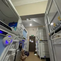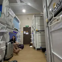 The bed was pretty nice, lots of privacy, it lights up different brightness which was nice - as per (which isn't the hostel's fault) I was next door to the loudest snorers even with my earplugs I could hear him still. Not enough hooks in the bedrooms / locks were too small so could not put my traveller bag in. The bathrooms were pretty gross, and no ventilation so the minute you showered you were all sticky again, never felt truly clean. Location was pretty okay - near stations like Lavender so could get to the airport easy which is basically direct. They had free coffee which were actually really nice, the water was warm so I had to fill my bottle up and put in the fridge. There was no real social aspect - not that I wanted it as I had massive jetlag when I arrived, and was out that afternoon exploring. It was average - the bed was pretty cool, but the hostel itself was meh (still it was a very affordable option)