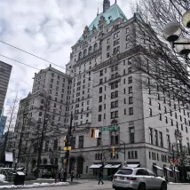 Near Burrard Station and a convenient place to travel to Whistler by bus. The bus is stationed next to the hotel.