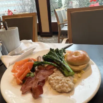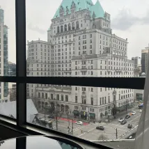 Best location in downtown. Right next to the hotel is Tim Hortons and McDonald’s. There is also a highly rated Mr.Schwarma food truck. 2 blocks from the hotel, on Hasting Street, there is a very good place for pizza called Nightingale. For transit, Burrard Station is right next door. Vancouver City Centre Station is within comfortable distance. We would definitely stay there again if we visit Vancouver next time!
