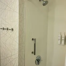 There were a few issues that I think need to be addressed. First, ice was not available on each floor and there was no complimentary water in my room. I was disappointed with the unsatisfactory condition of the refrigerator and there was no recycling bin in my room. There was no handle or bar on the shower door to open the door after showering and there was no place to put my towel convenient to the shower stall once I was done. The toilet paper holder was awkward to use forcing me to remove the toilet paper from it and leave it on the sink.