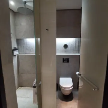สภาพแวดล้อมและสิ่งอำนวยความสะดวกโดยรวมดี~ เคาน์เตอร์บาร์และตู้หนังสือสูงจากพื้นจรดเพดานที่ชั้น 1 สวยสุดๆ เหมาะสำหรับถ่ายรูปและเช็คอิน! ตอนแรกฉันไม่รู้ว่ามีม่านบังแดดในห้อง เพราะคิดว่าไม่มีผ้าม่านหนาๆ สับสนอีกประการหนึ่งคือไม่เข้าใจว่าทำไมห้องเปลี่ยนเสื้อผ้าผู้หญิงในสระว่ายน้ำไม่เชื่อมกับสระว่ายน้ำหลังจากเปลี่ยนเสื้อผ้าแล้วต้องผ่านทางเข้ายิมก่อนลงสระว่ายน้ำ มีเพียงประตูเดียวระหว่างห้องเปลี่ยนเสื้อผ้าชายและสระว่ายน้ำ ฉันหวังว่ามันจะปรับให้เหมาะสมได้ในอนาคต~