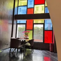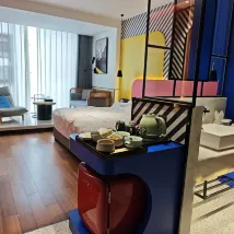 โรงแรมไม่ได้ตั้งอยู่ริมถนน แต่หันหน้าเข้าหาย่านที่อยู่อาศัย ทำให้ค่อนข้างเงียบสงบ ล็อบบี้ตกแต่งอย่างล้ำสมัยในธีมสถานีอวกาศ และเสียงเพลงบรรเลงที่ล็อบบี้ก็ผ่อนคลายในยามเย็น ลิฟต์และทางเดินก็ตกแต่งอย่างประณีตเช่นกัน ห้องพักสะอาดและเป็นระเบียบเรียบร้อย ตกแต่งด้วยโทนสีบล็อกใหญ่ที่อิ่มตัวสูง ให้ความรู้สึกทันสมัย