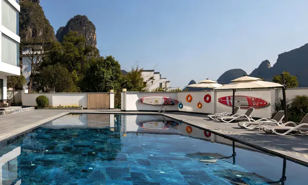 Yangshuo Dream Garden Resort Hotel is located in the picturesque core scenic area of Yulong River in Yangshuo's Ten Mile Gallery. Built against the mountains, it faces the mountains, away from the hustle and bustle of the city, and enjoys the natural scenery!Waiting for a romantic sunset in the dream garden, listening to pleasant music, drinking with friends, enjoying the sunset and dusk, like a painting slowly unfolding, the colors in the sky become soft and warm under the comfort of clouds. That delicate afterglow, like the shyness of a beautiful woman, reflects the earth and leaves a mark in your heart.In Yangshuo, you can ride an electric bike, enjoy the clusters of rapeseed flowers in spring, the blooming lotus flowers in summer, the golden rice fields in autumn, and the sunset glow in winter. Next to the hotel is the Shuiedi Pier, where you can take a bamboo raft on the Yulong River. It is about 5.9 kilometers away from the main attraction, Guilin Songcheng Eternal Love; About 8 kilometers away from Yangshuo West Street and Impression Liu Sanjie; It is about 2.5 kilometers away from Gongnong Bridge, Shili Gallery (Moon Mountain, Big Banyan Tree, Butterfly Spring, etc.), about 3 kilometers away by hot air balloon or paraglider, and can be easily reached by electric bike. You can rent your favorite two or three wheeled electric bicycles and bicycles right next to the hotel. In addition, it takes about 26 minutes by car to reach Yinziyan, about 50 minutes by car to reach Xianggong Mountain, and about 45 minutes by car to reach Xingping Ancient Town (a check-in spot for 20 RMB background).The hotel has complete facilities and equipment, including a starry sky pool, sky bar, and observation caf é KTV、 Forest pool, scenic waterfall restaurant, super large children's playground, multifunctional conference room, dining room, tea room, chess and card room, book bar, travel photography Sap、 Gym, laundry room, etc., contracted for your family, couples, girlfriends, and business travel. All room intelligent guest control and comfortable home furnishings provide you with a comfortable sleep. The hotel also offers distinctive northern Guizhou cuisine, using fresh ingredients and unique cooking techniques to allow you to experience the uniqueness of northern Guizhou cuisine and surprise your taste buds. The hotel will provide 24-hour butler style service to safeguard your journey.