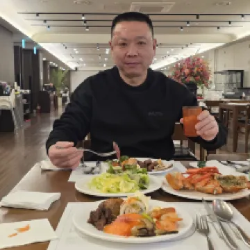 조식이 25000원짜리 치곤 괜찮아요. 전복죽, 미역국, 스프 나오고 빵, 샐러드, 스크램블에그, 베이컨, 쌀국수, 제육볶음, 각종김치류, 요거트, 과일 등등 많이 나오는데
