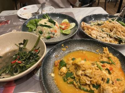 เป็นอาหารไทยที่มีชื่อเสียงมาก เนื้อปูผัดพริกเผา ล้วนเป็นอาหารขึ้นชื่อของเมืองไทยทั้งสิ้น ผมสั่งต้มยำ และเอ็นหมู ราคาถูกกว่าทานที่เซี่ยงไฮ้และสิ่งแวดล้อมมาก เป็นสิ่งที่ดี
