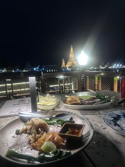3.5 ดาว บริการดีตั้งแต่ร้านเปิด (เปิดช้า ลูกค้าต้องยืนรอข้างนอกเพราะอากาศร้อน) บรรยากาศไม่ค่อยดี อากาศอบอ้าว เฟอร์นิเจอร์และเมนูเก่า อาหารมาเร็ว เครื่องดื่มมีให้เลือกหลากหลาย เราชอบต้มยำกุ้งน้ำซุปครีมมี่ ผัดไทยปู และสลัดส้มโอ อาหารเหล่านี้รสชาติดีและสดใหม่ ไข่เจียวปูอร่อยดีแต่ก็ไม่ถึงกับอร่อยเท่าไข่เจียวที่เรากินในตลาดกลางคืน แต่เราสั่งแบบเล็กและเรียบง่าย ไม่ใช่แบบที่มีชื่อเสียงอย่างกะเพราและกะปิ บางทีแบบนี้จะน่าจดจำกว่าหรือเปล่า เรากินของหวานจนอิ่มเกินไป แต่อาหารก็ดูดีเช่นกัน